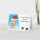 Um cartão de Natal bonitinho em um local de neve com um chapéu de Papai Noel.