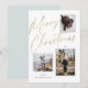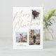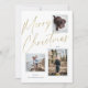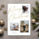 Este cartão de Natal de foto casual, mas elegante, apresenta três fotos e lê "Feliz Natal" em uma fonte de script de folha dourada falsa.