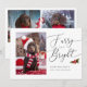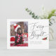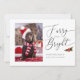 Cartão de modelo de Pet Photo de Natal bonito com um texto engraçado que diz "peluda e brilhante" num texto elegante. Adicione sua foto de cachorro ou gato. Você pode adicionar mais fotos atrás. Há uma ilustração aquarela de um erro.