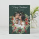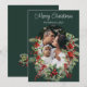 Cartão de Natal de Holly Tree Green Arch Foto Feriado de Natal Um Cartão de Férias de Natal elegante com uma fotografia num arco decorado com árvores ocas. Decorado com a mensagem tradicional de "Feliz Natal" em branco, num fundo calmo e verde. Adicione sua própria foto de família.