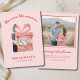 Cartão de Natal de Maternidade, Rosa e Red Modern, Cartão de Feriado de 2 Fotografias, com Foto Ultrassônica.