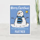 Feliz Parceiro de Natal. Um desenho animado de boneco de neve em um cartão festivo de Natal. Cartão de Natal para um Parceiro Maravilhoso.