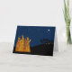 Três homens sábios, rendidos em um estilo marquetry com grão de madeira de ouro, aproximam-se de uma aldeia desértica escura aninhada entre as palmeiras com uma estrela guia brilhante sobre esta trabalho de arte digital por Jayne Wilson.