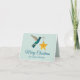 Cartão de Natal com um beija-flor de bico largo e um ornamento em forma de estrela. A mensagem interna é "Desejando a você uma temporada cheia de luz e risadas para você e sua família."
