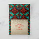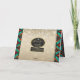 Personalize este cartão de Natal "Único" do Sudoeste Kokopelli! Ele apresenta um Kokopelli tocando a flauta com notas musicais em um fundo de Natal bege com flocos de neve, cercado por bordas de turquesa, laranja e preto e as palavras edificantes... "Paz na Terra"!
