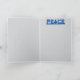 O Papai Noel está usando óculos de sol arco-íris e olhando para fora de uma grinalda enquanto dá o sinal de paz.