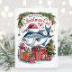 Cores d'água brancas engraçadas pesando cartão de Natal. Personalize com seu próprio texto de saudação.