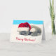 Este engraçado e personalizável cartão de Natal tem uma foto de uma gatinha de cinza inocente com olhos azuis vestindo um boné de Papais noeis com "Feliz Natal" escrito abaixo. O verso dentro não tão inocente diz: "O teu presente está na caixa de lixo!". Você pode mudar o texto e o verso usando as caixas de modelo.