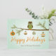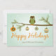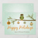 Este cartão de feriado moderno apresenta um gráfico com ornamentos retrorreflectores e uma coruja empoleirada num galho com a mensagem Felizes Feriados. Personalize com seus nomes.