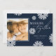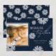 Use nossos cartões de Natal com flocos de neve juntos para desejar a seus amigos e família um Feliz Natal. Design apresenta um fundo azul-marinho de tendência com uma fotografia da sua escolha, flocos de neve caindo e um modelo elegante.