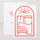Arca vermelha simples moderna com tipografia "FELIZ" divertida. Todo texto no verso é estilo modelo e simples de personalizar