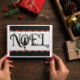 A paz do feriado é acentuada pela graça tranquila de uma silhueta felina neste doce Cartão de Natal.