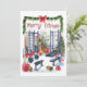 Uma malhação de Natal animadora, com equipamento de malhação rodeado por decoração de Natal. Personalize com seu texto de saudação.