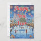Envie um desejo mágico com este cartão de Natal artístico que retrata uma celebração em uma cidade nevada sob um céu de fogos de artifício coloridos. Uma escolha nostálgica e emocionante para o Ano Novo