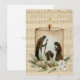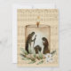 Deseje aos seus entes queridos um Feliz Natal com este belamente simples cartão de Natal com a cena da natividade representada na silhueta numa vela, e um galho de oliveira e flores no topo de uma digitalização da partitura "Noite Silenciosa" tirada de um antigo livro de hinos.