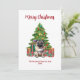 Cartão "Feliz Natal" com árvore de Natal e presente. Personalize com seu texto.