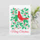 Festividades Cartão de Natal Red Bird & Holly com Berries Flat