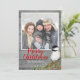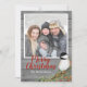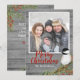 Adicione sua própria foto para personalizar este cartão de férias da fazenda rural. Uma gracinha de Natal gira é tocada num galho de pinheiro decorado com bagas vermelhas, num canto, e o fundo é madeira de cinza rústica.