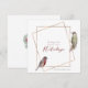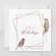 Um simples cartão de natal de aquarela com aves sazonais, com um quadro geométrico e uma mensagem de feriado de inverno quente. personalize com seu nome de família.