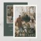 FELIZ NATAL | Cartão de Férias com Foto. Tipografia minimalista moderna em bege suave com fundo verde escuro.