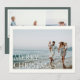 FELIZ NATAL | Cartão de Férias com 3 Fotos. Tipografia minimalista moderna em bege suave com fundo na cor verde mar escuro.