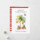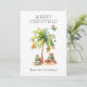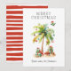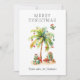 Mude o espírito tradicional de Natal com o nosso cartão tropical de Natal. Ideal para aqueles que celebram festas sob o sol, ele apresenta uma vibrante palmeira enfeitada com bolas coloridas, presentes espalhados ao longo da praia arenosa, enquanto um papagaio brincalhão esportivo esportivo de um Papai Noel congela na cena. Para aqueles afortunados por terem verão no Natal ou passarem suas férias no Havaí tropical, este cartão captura a essência de uma época de yuletide de praia.