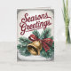 Cartão de Natal com estilo de vintage personalizado, com sino festivo de Natal e "Saudações de Seasons" na tipografia de guião! Personalize-o e envie-o como um download instantâneo para seus amigos e familiares. O interior é totalmente editável, então você pode editar as saudações e assiná-las com seu nome de família, o ano e todos os seus nomes. O dentro apresenta um quadro decorativo de coração de Natal à esquerda com texto editável, e o cartões de natal principal editável à direita, seguido dos seus nomes. Tente ver como está!