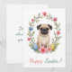 Espalhe a alegria deste feriado brilhante com nossa placa de Páscoa com um bonitinho rodeado por uma delicada disposição de Páscoa em tons pastéis. Este cartão é perfeito para as saudações Páscoas, acrescentando calor e conforto aos vossos desejos. As cores brilhantes, mas suaves, criam uma atmosfera de alegria e amor, e o charmoso cachorrinho traz certamente um sorriso à face do receptor. Escreva seu dentro de saudações sinceras e torne este feriado ainda mais especial! Perfeito para amigos e família, este cartão será uma maravilhosa adição às suas saudações de Páscoa.