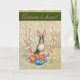 Envie esta carta para os entes queridos para celebrar o regresso da Primavera. Ele apresenta um coelho preto e branco, ovos coloridos, salgueiro de xoxota e crocodilos.