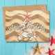 Conchas marinhas e estrelas vermelhas formam uma árvore de natal na areia nesses planos, não-cartões com fotos e têm sua saudação personalizada e nomes nas costas. Selecione Matte para o papel mais pesado e alta definição para melhor qualidade de impressão.