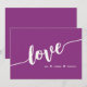 Cartão de saudação elegante de tendências, com um roteiro proeminente que soletra "LOVE" num fundo de cor rica. Simples mensagem personalizável de afeto. Disponível em versões de placa dobrada e plana. Perfeito para Dia de os namorados, Dia Mais Doce, aniversário de casamento ou qualquer dia!