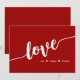 Cartão de saudação elegante de tendências, com um roteiro proeminente que soletra "LOVE" num fundo de cor rica. Simples mensagem personalizável de afeto. Disponível em versões de placa dobrada e plana. Perfeito para Dia de os namorados, Dia Mais Doce, aniversário de casamento ou qualquer dia!