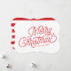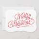 A inscrição bonito com as palavras "Feliz Natal" enfeita este simples mas festivo cartão de férias, vermelho e branco, não fotográfico.