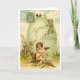 Cartão francês da páscoa do vintage/Victorian. Cupido adorável que sharpening suas setas e que senta-se na frente de um grande, ovo da páscoa ornamentado! Joyeuses Pâques! Cartão de páscoa francês bonito!