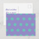 Um fundo lavanda com bolinhas aqua ... Verso diz... "Desejos sinceros para um dia inesquecível!"...