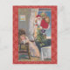 Este cartão postal personalizado adorável apresenta Papais noeis que vêm pela janela com seu saco de brinquedos e uma pequena árvore de Natal verde, enquanto a garotinha na cadeira está dormindo profundamente. As palavras "Um Feliz Natal" aparecem no canto superior esquerdo do cartão. A imagem de vintage é colocada contra um fundo de Natal vermelho nevado para completar este cartão postal adorável. Obrigados para www.allclipart.info e www.theclipartcorner.com, para os designs usados para criar nossos produtos.