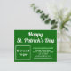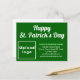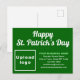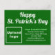 Ruas verdes. Cartão postal de feriado Patrick que você pode personalizar carregando o logotipo da sua empresa, digitando seu nome, endereço, número de telefone, e-mail e site ou página de mídia social. Personalize-o e dê-o aos seus clientes ou clientes para cumprimentá-los nesta Rua. Dia do Patrick. Um cartão postal de feriado para anunciar também a sua empresa ou promover o seu nome de marca. Um cartão postal de feriado personalizável que você pode incluir em seus materiais de marketing para criar reconhecimento de nome de marca. Verifique a aparência após carregar o logotipo e digitar textos. Se a aparência lhe agrada, você pode colocar seu pedido agora. Se você precisar redimensionar e reposicionar o logotipo e as mensagens para ajustado neste cartão postal de feriado, ajuste na ferramenta design. Você também pode alterar a cor do plano de fundo, a cor da fonte e o estilo da fonte na ferramenta design. Feliz Rua, Dia de Patrick! Desejando-lhe o melhor de sorte, alegria e mais vendas neste feriado.