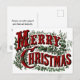 Personalize este cartão postal Feliz Natal com a sua própria mensagem no verso. Este clássico cartão de Natal apresenta uma vintage dos anos 1800, desenhada à mão "Feliz Natal" em vermelho clássico e verde na frente. Disponível em várias cores e tipos de papel.