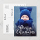 Natal moderno | Cartão-postal de Natal com uma bela letra cursiva escrita "Feliz Natal" com uma fotografia. Mande alegria de férias para sua família e amigos. Itens correspondentes também estão disponíveis.