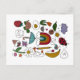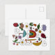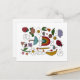 Este cartão-postal apresenta objetos aleatórios em cores divertidas para o sentimento saudoso do livro adesivo de 1980. As pequenas ilustrações bonitinhas incluem morango, tartaruga, ovo frito, tulipa, folha, nuvem de chuva, joaninha, biscoito de chocolate, barco, banana, xícara de café, balão, margarida, lápis amarelo, pato ou ganso, cogumelo, estrela, sorvete cone, borboleta, guarda-chuva, envelope, bolha de fala com a palavra "hi", e um cartão de leite. Arte criada por Tracy Lopez.