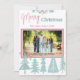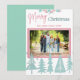 Cartão de fotos chrismtas de família adorável online, este é um cartão de saudação de fotos do estilo boho minimalista e bonito. Cores cor-de-rosa e verde-menta.