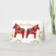O cartão vermelho dos cavalos de Dala é dos cavalos de madeira cinzelados e pintados pelo artista Julia Morrill junto com uma aguarela e uma pintura acrílica.