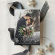 Cartões com fotos elegantes para recém-casados apresentam uma foto favorita de casamento vertical ou orientada a retratos com "casado e brilhante" em um roteiro de caligrafia branca adornado com flocos de neve. Personalize com seus nomes ou saudação personalizada abaixo. Perfeito por compartilhar uma foto de casamento para seu primeiro Natal casado.