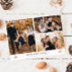 Cartão de modelo Elegante de Foto de Natal com um texto que diz "Esta é a estação para ser feliz" na parte inferior com uma ilustração. 3 fotos na frente e 1 na parte traseira.
