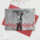 Espalhe a alegria de férias com este elegante cartão de feriado. Esta placa lisa apresenta o roteiro vermelho, com letra de mão, "feliz e casado" com fundo de neve vermelho e branco. O cartão perfeito para recém-casados. Uma versão de cartão postal e de cartão dobrado está disponível.