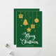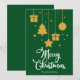 Feliz Natal em uma fonte decorativa de rico com ícones de Natal pendurados e design. Este cartão de Natal verde é projetado para que você possa mudar a cor do plano de fundo e também digitar seu nome de família ou removê-lo se quiser apenas ter o design sem o texto.