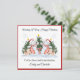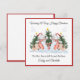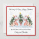 Este cartão de Natal é adequado para raparigas gêmeas no seu primeiro, segundo ou terceiro Natal. A design inclui um contorno vermelho, flocos de neve azuis-claros, árvores de Natal com aquarela, canas doces, presentes e bonecos gêmeos.