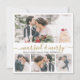 A Elegante Caligrafia Moderna Branca e a Dourada Colagem de Fotografias Casada e Feliz Cartão de Natal. Esta nova carta de natal festiva e mimalista apresenta quatro (4) colagens de fotos em grade e texto de saudação "Casado e Feliz", que é escrito em um belo tipo de letra branco e branco, escrito com letras esplêndidas e sujas. Do lado oposto, flocos de neve bonito em fundo falso de folha de ouro. Bonito cartões de saudação fácil de enviar saudações para a família e amigos pelo seu primeiro Natal como marido e mulher na época de Natal.