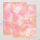 Um design cor-de-rosa e laranja com texto na frente dizendo "Pensando em você" em escrevendo cursivo. A frente do duro tem dois contornos de rosa.