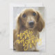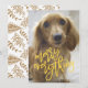 Feliz Tudo Cartão com fotos Espetacular Script Amarelo. Sua foto no verso ou atual padrão de apoio floral vermelho. Estilo bonito de script de caligrafia. Estilo de inscrição. Grande design de fotos. Feliz, design festiva.